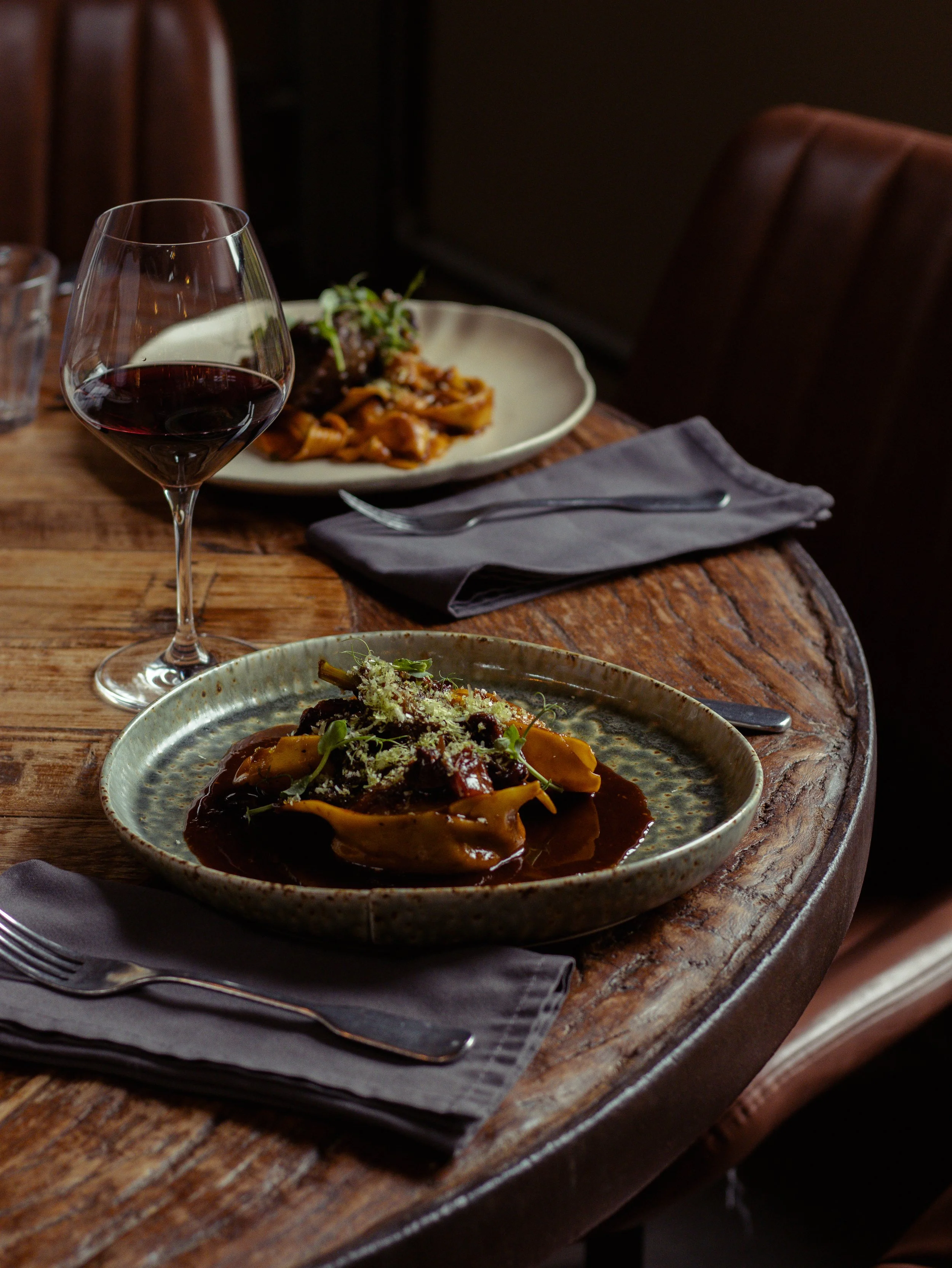 Handmade pasta, wood-fired pizzas, dishes inspired by heritage, provenance, and the beauty of simplicity. We take our time—slow food, deep flavours, real craft.